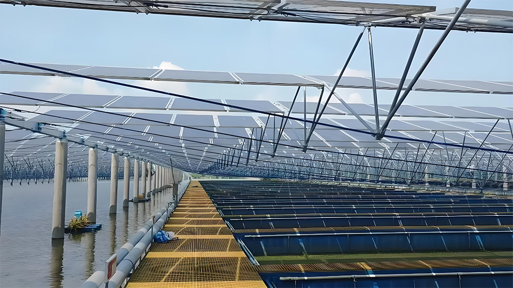 Гибкая солнечная монтажная опора представляет собой многопролетную конструкцию с большим пролетом и высоким просветом. Эта конструкция использует предварительно напряженные стальные тросы, натянутые между двумя фиксированными точками, которые поддерживаются жесткими конструкциями и внешними наклонными стальными прядями на концах для обеспечения сил реакции. Она адаптируется к таким условиям, как волнистая местность и обильная растительность, требуя только установки фундаментов в соответствующих местах и натяжения предварительно напряженных стальных прядей или тросов. В условиях постоянного уровня воды она может обеспечить строительство жестких колонн, фундаментов и гибких опор в озерах и рыбоводных прудах.
