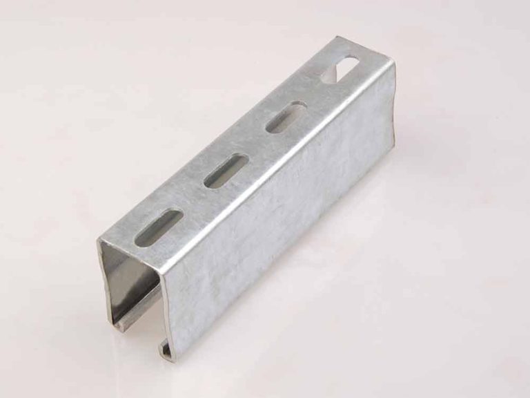 Material: Carbon steel (galvanized), stainless steel, or aluminum. Channel Types: P1000, P1100, P2000, P3000 (standard sizes). Slot Spacing: Typically 1-3/8″ (34.9 mm) center-to-center. Length Options: Standard lengths (10′, 20′), or custom-cut sizes available.